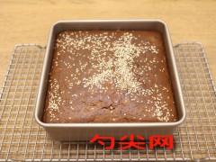 工艺:步骤1红枣去核,剪成小粒。步骤2红枣肉、牛奶、红糖、盐入小锅,小火加热,熬至红糖和盐融化,关火晾凉使用。步骤3低筋面粉和泡多源G 混合,过筛2遍。步骤4少许面粉和核桃仁混合,这样能更好地融入蛋糕糊。步骤5.8个鸡蛋入稍大些的打蛋盆中,加入红枣碎。步骤6高速搅打约5-8分钟。步骤7筛入粉类加入玉米油、核桃仁翻拌均匀。步骤8蛋糕糊倒入铺了油纸的不粘模具中,表面撒白芝麻。步骤9将盛着红枣糊的模具送入预热好的烤箱中下层,上下火160度,60分钟。步骤10出炉后端起模具轻震几下,自然晾凉后脱模,切块食用