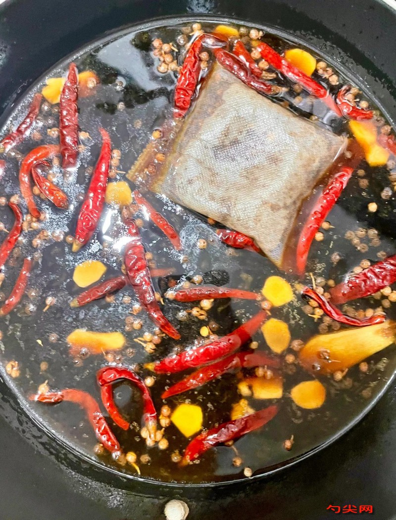 配方:干辣椒500克(二荆条和灯笼椒各半),花椒100克,姜片150克,大蒜200克,大葱段300克,色拉油8000毫升,牛油2000毫升,八角50克,桂皮30克,香叶20克,小茴香60克,草果4个,丁香10克,砂仁25克,白豆蔻30克,郫县豆瓣酱1000克,永川豆豉200克,冰糖800克,盐适量,生抽500毫升,老抽150毫升,料酒400毫升,味达蕾901号20克,高汤8000毫升(猪骨、鸡架熬制)。