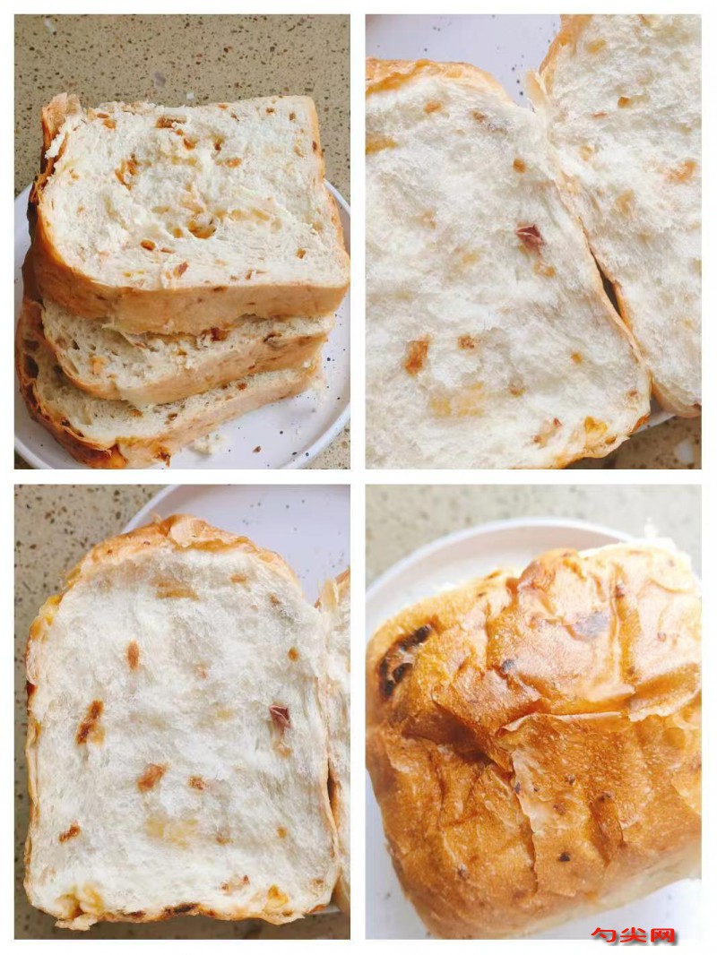 配方:高筋面粉1000克,佳多美Q10克,即发干酵母10克,细砂糖50克,盐15克,鸡蛋2个(约100克),牛奶400毫升,黄油100克,脱水洋葱100克(提前用水泡发,切碎备用),美久亭Q0.5克(提前溶解备用)。