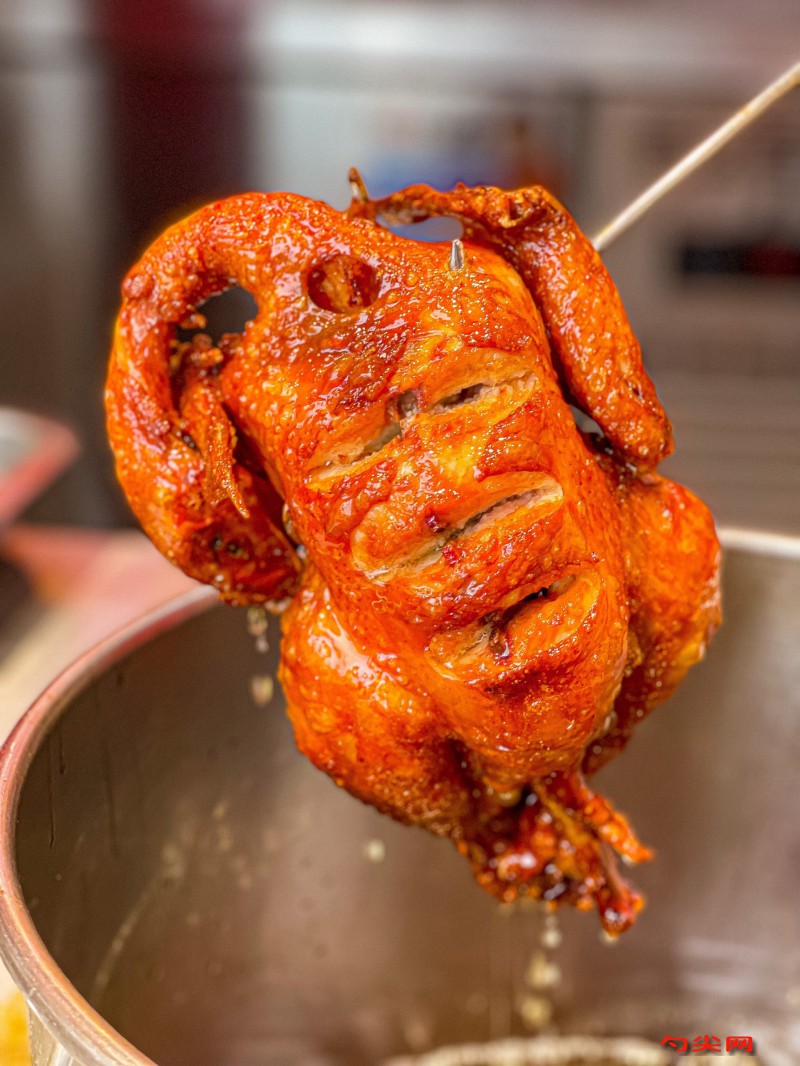 配方:童子鸡1000克、富磷联B8克、食用盐15克、白砂糖8克、味达蕾901号3克、五香粉5克、白胡椒粉2克、生姜粉3克、大蒜粉3克、料酒10克、大豆油30克(腌制用)、麦芽糖20克与水50克混合液(上色用)、起酥油1500克(油炸用)、香辛料包(八角4克、桂皮3克、小茴香3克、草果1.5克、丁香0.5克)。