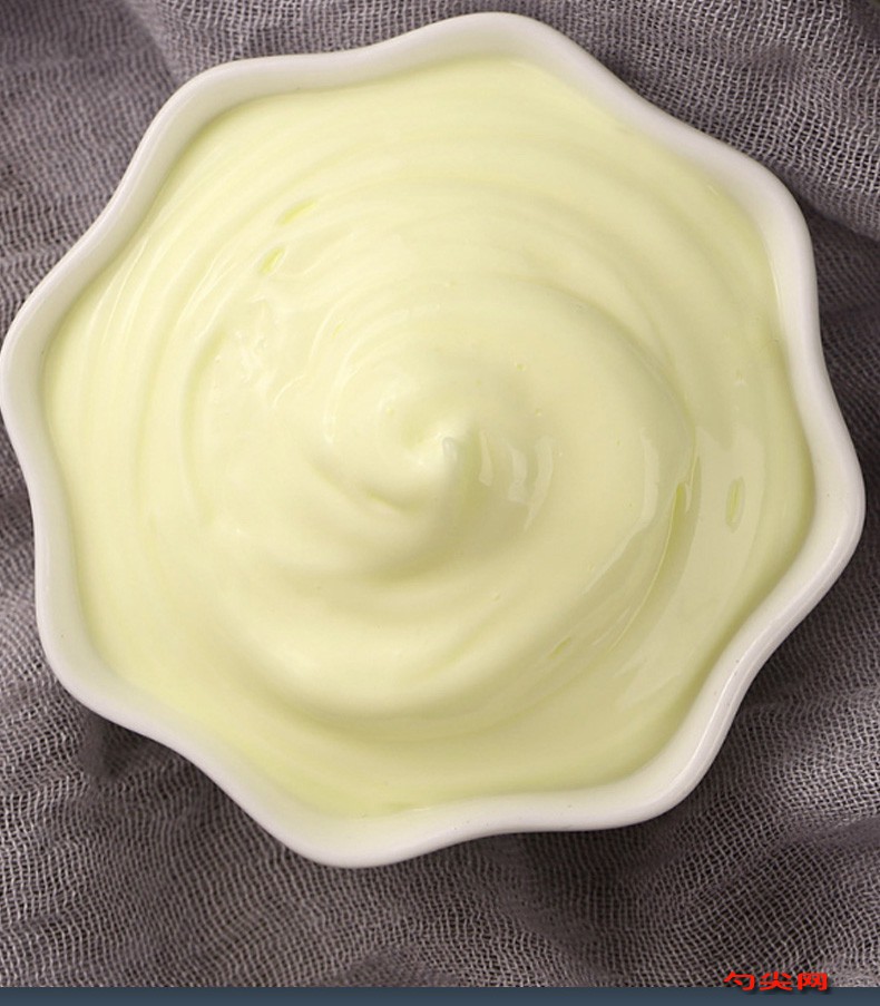 配方:大豆油2500克、蛋黄200克、白砂糖400克、盐60克、柠檬汁300克、白醋200克、佳多美D5克、奶粉100克、玉米淀粉120克、纯净水300克。
