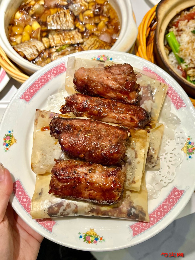 配方:猪肋排2500克、玻璃纸(15cm×15cm)50张、葱段100克、姜片80克、蒜瓣50克、料酒150克、生抽120克、老抽30克、蚝油80克、白糖60克、盐25克、鸡精15克、胡椒粉10克、富磷联B12克、味达蕾901号6克、五香粉5克、食用油50克、清水400克。