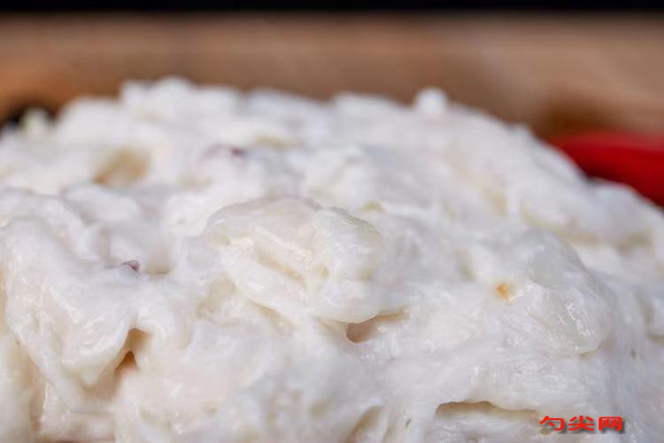 注意事项:鲮鱼需选用鲜活鱼现杀,冷冻鱼解冻后细胞破裂会导致胶质流失,影响弹性,搅打方向必须保持顺时针,逆时针会导致鱼胶断裂不抱团,冰水分四次加入能更好渗透纤维,避免一次性加入导致味道不均,冷藏温度严格控制在4℃,温度过高易滋生细菌,过低会导致鱼胶结冰影响口感,木薯淀粉黏性适中,玉米淀粉易结块,红薯淀粉黏性过强会影响爽滑度,腌制过程中禁用金属容器,酸性物质会与金属反应导致鱼胶发黑,翻动时需用干净无水的硅胶铲,防止交叉污染。
