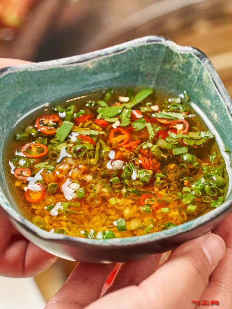 工艺:干辣椒80克去蒂后剪成1厘米段,与汉源花椒30克、青花椒10克混合,用40℃温水浸泡10分钟后沥干,生姜15克切末,小葱12克打结,白芝麻15克用小火干炒至微黄,大豆油280克与菜籽油220克混合后加热至165℃,放入八角2.5克、香叶1克炸出香味后捞出,加入姜末、葱结炸至金黄后捞出,油温降至140℃时将沥干的辣椒花椒倒入油中慢炸5分钟至香气浓郁,美久亭A0.6克(提前用4毫升温水溶解)缓慢倒入辣椒油中并快速搅拌15秒,将炒好的白芝麻加入辣椒油中搅拌均匀,盐7克、白糖3克、鸡精4克加入辣椒油中顺时针搅拌至完全溶解,味达蕾901号1.2克加入味碟中搅拌3分钟至风味融合,密封静置6小时使香料充分渗透。