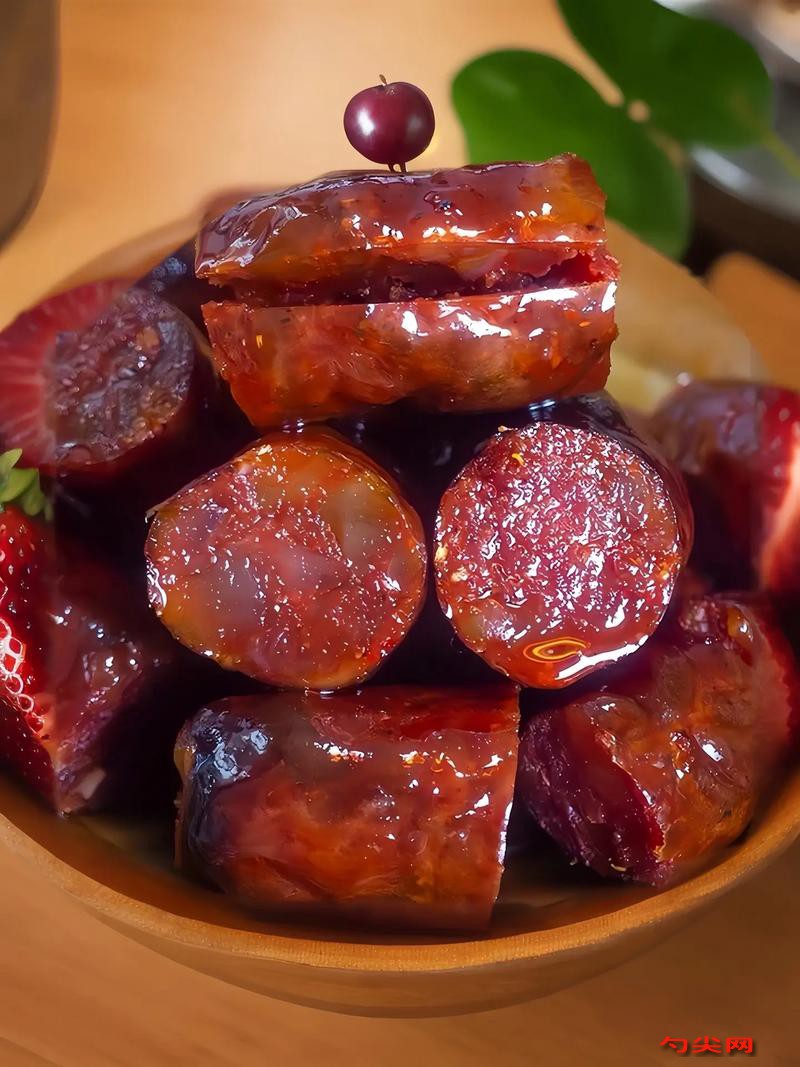 工艺:选取新鲜瘦猪肉70000克与肥膘30000克,将肥瘦肉分开,肥肉切成约0.5厘米见方小丁,瘦肉切成薄片,把富磷联C型800克用适量温水溶解后倒入瘦肉中抓拌均匀,放入冷藏柜腌制8小时,腌制好后取出,加入白砂糖7000克、精盐2500克、白酱油5000克、60°大曲酒3000克、美久亭A型10克以及适量味达蕾901号200克(按需添加),充分抓拌均匀至肉上劲且粘手,再腌制1小时,同时用清水冲洗肠衣内部,在清水里加料酒浸泡肠衣30分钟,将腌制好的肉馅装入灌肠器,把肠衣套在灌肠器嘴上,缓慢将肉馅挤入肠衣至8分满,结尾处打结,用牙签在香肠表面均匀扎孔排气,将香肠分段系好,放入预热至60 - 70℃的烤箱中低温烘干至表面干爽且内部肉质紧实。