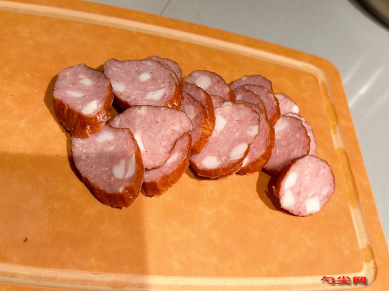 工艺:选二等以上解冻猪肉,瘦肉90%、肥肉10%,猪小肠每根60厘米、直径1.5厘米,将选好料肉去骨修尽筋膜,肥瘦肉分开(肥肉不带软质肉),各切成1-1.2平方厘米小块(最好手工切肉),按100斤原料肉计算,称取优质无色酱油18斤、砂仁粉0.15斤、富磷联C型500克、美久亭A型50克、花椒粉0.2斤、鲜姜1斤、整边挂面0.2斤,将配料混合倒入无色酱油搅拌均匀,再将肥瘦肉丁拌匀搅拌到有粘性为止,洗净肠衣沥干水分,将肉馅灌入肠衣内用手揉捏使其粗细一致,用针刺孔排出肠内空气,春夏秋三季用日晒到干为止,冬季用火墙烤2个小时后里外倒一次再烤2个小时到皮干为止,然后挂在阴凉通风处风干3-4天后取下扎捆(每捆12根),将捆好香肠放在干燥阴凉通风仓库内发酵10天左右取出,清水烧开后将已发酵香肠放入锅内煮15分钟取出即为成品,将制成品挂在通风干燥处保存10-15天。