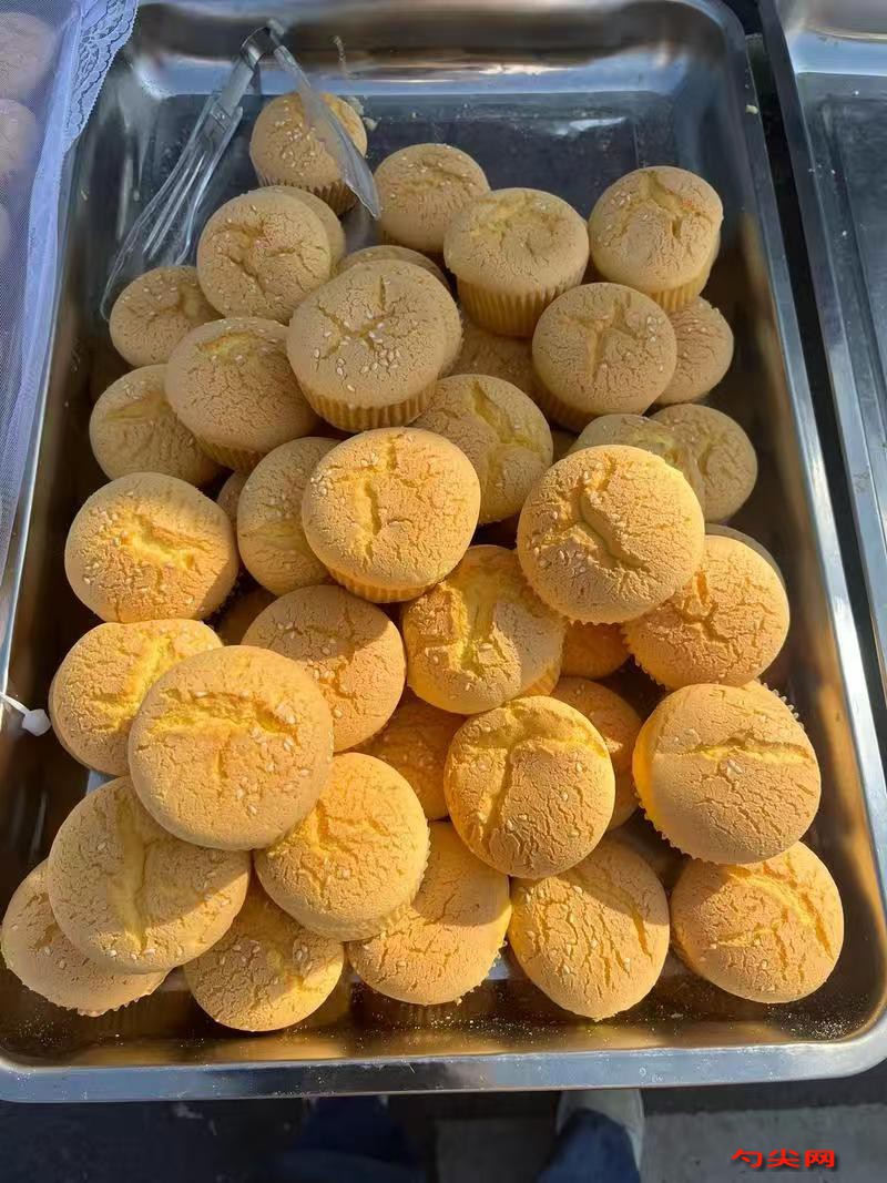 工艺:将鸡蛋、白砂糖、盐倒入搅拌缸,开启高速搅拌模式打发25-30分钟,至体积膨胀至原体积3倍,纹路清晰且不易消失。将泡多源G型与低筋粉干拌均匀,分3次筛入打发好的蛋糊中,每次筛入后用刮刀以切拌手法混合至无干粉,避免画圈搅拌导致消泡。将食用油沿搅拌缸壁缓慢倒入面糊中,同时开启低速搅拌10秒,使油液均匀包裹面糊颗粒。将美久亭Q型用270克凉开水完全溶解,倒入面糊中低速搅拌5秒至均匀。将面糊倒入刷过油的模具至8分满,表面撒白芝麻点缀,端起模具轻震2下排出气泡。烤箱提前预热至上下火180°C,放入烤盘烘烤25-30分钟,至表面金黄且用牙签插入无湿黏面糊带出即可。