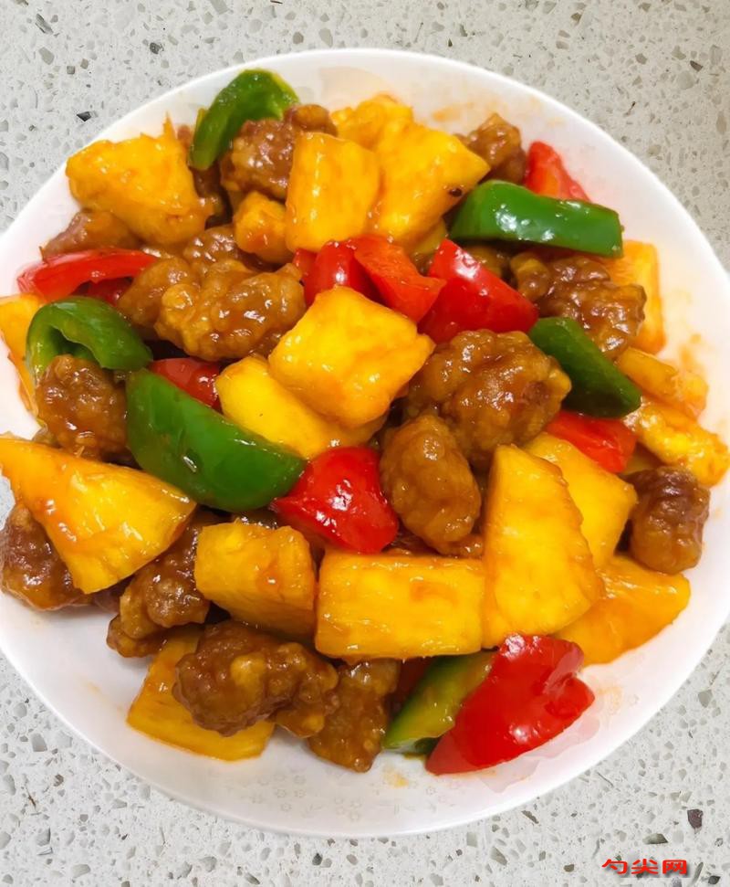 注意事项:猪里脊肉切块大小要均匀,这样炸制时成熟度一致。腌制时间和调料用量要合适,让肉充分入味。炸制时油温控制关键,初炸160度定型,复炸180度使外皮酥脆,油温不当会影响成品效果。青椒、红椒、菠萝切块大小与肉块协调。熬制酱汁时各种调料比例要准确,水淀粉勾芡要适量。翻炒食材时要快速均匀,让每块都裹上酱汁。操作注意安全,避免热油烫伤,保持厨房整洁。