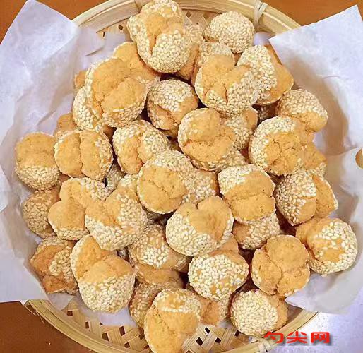 注意事项:原料称量要精准,过多或过少都会影响成品效果,和面时叠面手法要正确,确保面团均匀,揉面要揉匀,保证面团质地细腻,醒发时间要足够,使面团柔软易擀,擀片时厚薄要均匀一致,切割大小也要一致,保证成品外观整齐,芝麻用水拌湿润程度要适中,太干不易粘附,太湿芝麻易成团,裹芝麻时要均匀,避免芝麻堆积影响口感和外观,油温控制很关键,初始油温不能过高,防止面坯表面迅速结皮影响开口,后期适当提高油温使成品色泽金黄,炸制过程中要适时翻动面坯,确保受热均匀,炸好后捞出沥油,避免成品过于油腻,储存时要放在干燥通风处,防止受潮变软影响口感。
