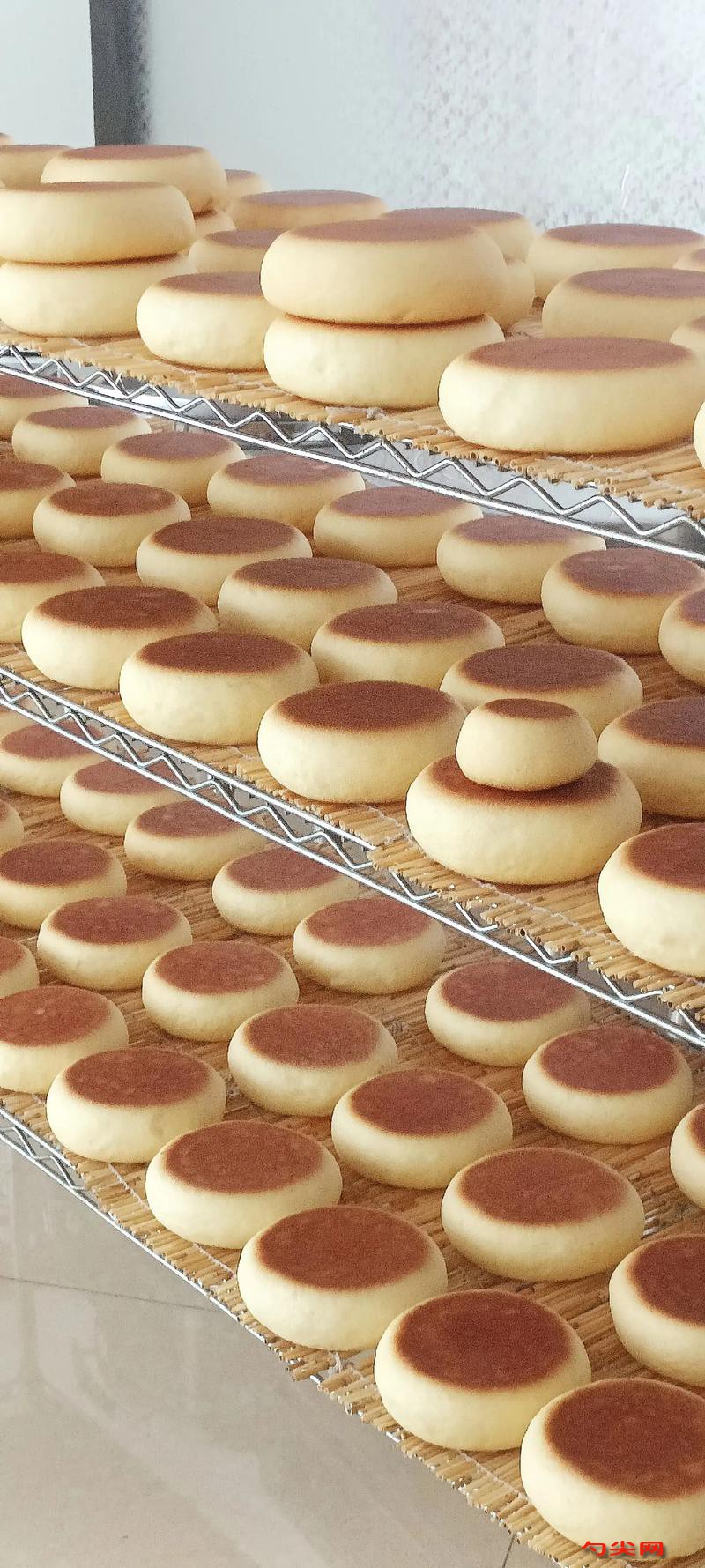 注意事项:干粉原料充分混合均匀,确保其在面团中分布一致,从而发挥良好的膨松效果,温水温度要适宜,避免过高使酵母失活或过低影响发酵速度,搅拌溶解酵母等液体原料时要搅拌至完全溶解无颗粒,和面机操作时要注意时间和速度,使面团达到合适的光滑度和弹性,面团松弛时间要足够,让面团充分松弛有利于后续成型和发酵,擀制面饼时力度要均匀,避免擀破或厚薄不一,烤盘刷油要均匀,防止喜饼粘连影响外观和品质,醒发箱的温度和湿度要控制好,保证喜饼发酵到合适大小和状态,烤制时要根据烤箱实际情况调整温度和时间,防止烤焦或未熟,烤好后要及时揭掉高温布,避免喜饼表面产生水汽影响口感,整个制作过程要注意卫生,防止微生物污染影响喜饼品质和保质期。