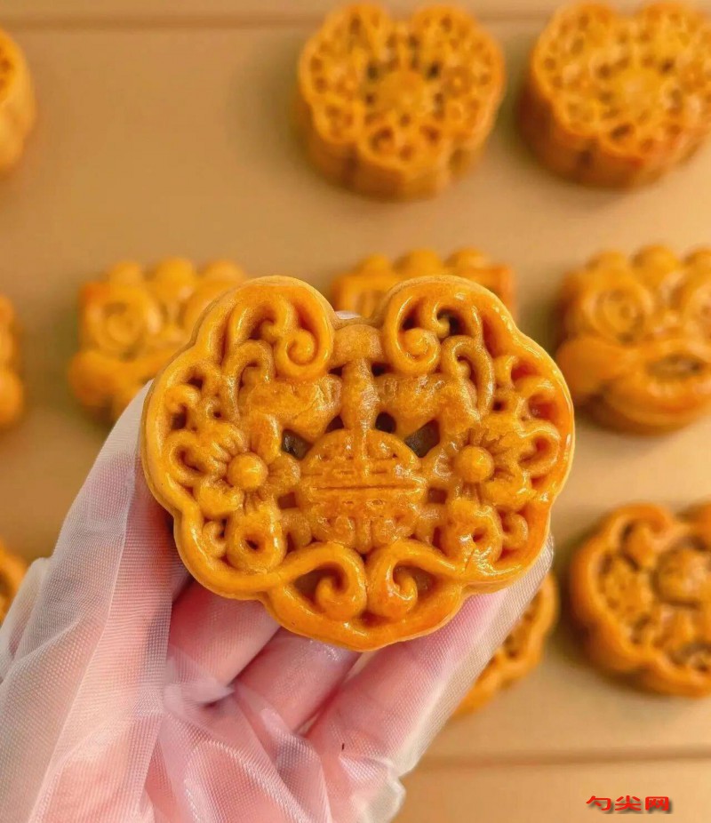 注意事项:饼皮与馅料温度需一致(约25℃),温差大易导致包制时破裂。收口处捏紧,避免烤制时露馅。第一次烘烤定型需高温短时,防止花纹模糊;第二次低温慢烤,确保内部熟透。刷蛋黄液时需薄而均匀,厚了易焦糊,薄了不上色。