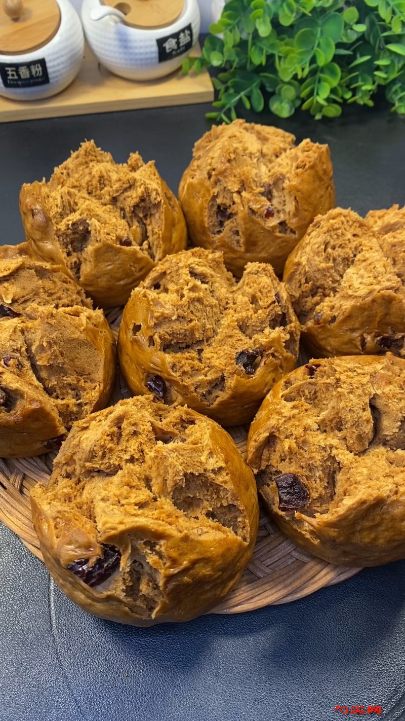 配方:红糖90克,开水270克,酵母5克,面粉500克,泡多源A型8克,食用油30克,大枣碎60克。