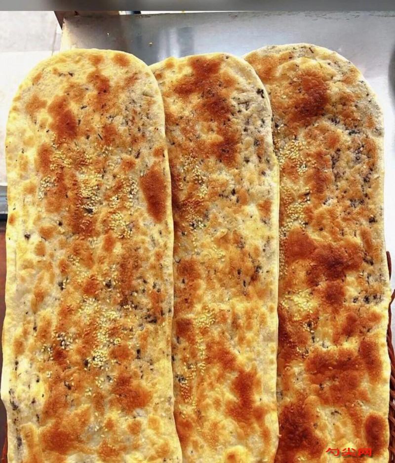 工艺:1.机器和面,按比例将面,面欣酥A型和水放入容器,启动和面机搅拌3分钟。搅好的面团放入桶内,在桶内壁抹一层油,面团上层盖上保鲜膜,醒发30分钟。2.手工和面,按比例放面和水,从下往上抄面至无干面粉,再揉成面团,揉至手光、面光、盆光。在和好的面上抹油,盖上保鲜膜,醒发40分钟。使用面团时,直接扯成长条,避免来回折叠,防止面团上劲影响饼胚制作。油酥:将所有材料搅拌均匀,至无生粉和面粉疙瘩。常温保存,使用时若太干,可加入大豆油搅匀。梅干菜处理方法:梅干菜浸泡半小时,冲洗三四次,直至底部无沙子,甩干水分并搓散。每500克处理好的梅干菜加入50克白糖。酱料配方:辣椒酱:锅中倒入2斤油烧热,准备500克辣椒面,并加入适量盐、鸡精、白糖,将热油泼入辣椒面中即可。涂抹时,需同时涂抹辣椒油和辣椒面,仅涂辣椒油香气不足。青椒酱:线椒洗净后放入破碎机打成颗粒状,加入盐、鸡精和适量香油。夏季辣椒易出水,若有出水情况,需将水倒出。甜面酱:500克甜面酱加入150克开水搅匀。涂抹甜酱时刷子要专用,避免与其他酱料混用,若同时涂抹甜酱和辣椒酱,应先涂甜酱,若先涂辣椒酱,甜酱可滴在上面或涂在饼的另一半,防止串味。花生酱:锅中倒油烧热,放入一把生花生碎、一点辣椒面、一点不辣的辣椒面和适量虾米炒香,倒入适量开水烧开,加入切碎的新鲜小茴香叶子,再放入适量鸡精烧开,最后倒入适量面水勾芡即可。饼胚制作取140克面团搓成约十厘米长条,用手掌心压开一分为二后,一边用手托起,另一边压住并:将托起部分向后拉长至三乍半长、半乍宽。均匀涂抹20克油酥料、20克肉馅、20克梅干菜,从尾部向上卷起,头部按开包裹住饼胚,两头捏紧收好,压在饼胚下方。装盘时,在饼胚底部两边抹油,盖上保鲜膜,防止粘连和表面风干,方便出摊使用。烤饼温度:上火控制在290-320度,下火80-90度,烤饼前确保锅达到相应温度,并在热锅时撒油。