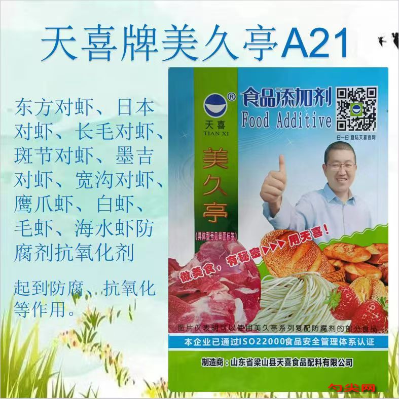 ★功能作用:〔美久亭A21型〕用于东方对虾、日本对虾、长毛对虾、斑节对虾、墨吉对虾、宽沟对虾、鹰爪虾、白虾、毛虾、龙虾等海水虾类鲜水产,起到防腐保鲜、抗氧化、护色等作用。