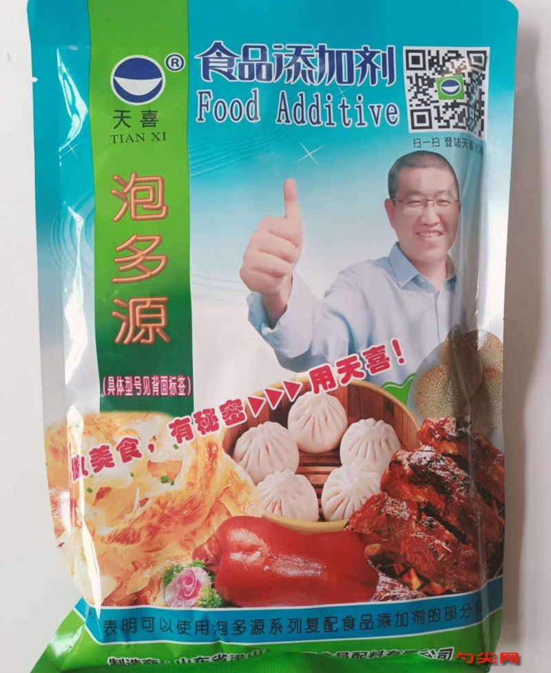 ★商品名:天喜牌泡多源E型 产品名称:泡多源牌复配酶制膨松剂1 型号:PDY-E 本品按照《食品安全国家标准 食品添加剂使用标准GB2760》及补充规定的品种、应用分类、使用范围、最大使用量、残留量等科学组方,并且按照《食品安全国家标准 复配食品添加剂通则GB266871》精心配制而成。本品已经通过食品生产许可,保障食品安全。用户按照本说明的用法用量生产制作的熟制肉制品(食品分类号:08.03)、预制肉制品(食品分类号:08.02)、冷冻鱼糜制品(食品分类号:09.02.03)既不会超标也不会超量。