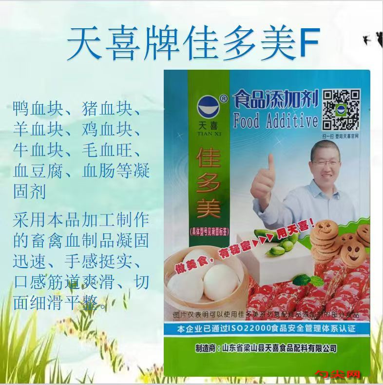 ★功能作用:采用〔佳多美F型〕加工制作的鸭血块、猪血块、羊血块、鸡血块、牛血块、毛血旺、血豆腐、血肠等畜禽血制品凝固迅速、手感挺实、口感筋道爽滑、切面细滑平整。