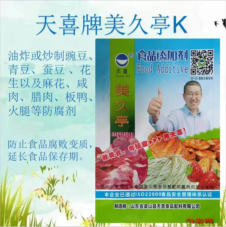 ★功能作用:〔美久亭K 〕用于油炸或炒制豌豆、青豆、蚕豆、黄豆、黄金豆、黑豆、瓜子、酒鬼花生、扁桃仁、腰果、开心果等带壳与不带壳的坚果与籽类,以及油炸汉堡、麻花、薄脆、面棍、面条、面姜丝、油条等油炸面制品,还可用于咸肉、腊肉、板鸭、中式火腿、腊肠等腌腊肉制品,可以调节食品PH值,有效抑制食品中微生物的繁殖,防止或延缓食品成分氧化、分解变质,防止食品腐败变质,延长食品保存期,起到防腐保鲜作用。〔美久亭K〕还可用于炸麻叶、油炸花生米、油炸豌豆、盐焗五香花生米、油炸黑豆、白面江米条、油炸馓子炒蚕豆、蔬菜丸子、焦酥果、薄脆、炒瓜子、油炸黄金豆、油炸焦酥果、春卷、盐焗花生、琥珀核桃仁、油炸青豆、甜甜圈、千层酥脆麻花、方便面、姜丝、手工酥脆麻花等,起到防腐保鲜作用。