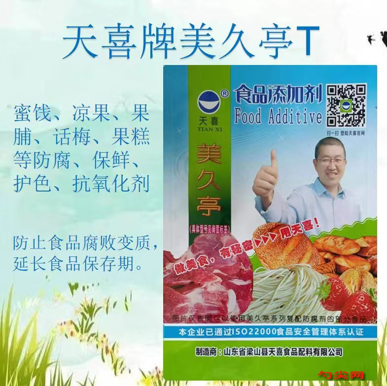 ★功能作用:〔美久亭T 〕用于甘草金桔等各种蜜饯、凉果、果脯、话梅、果糕,可以调节食品PH值,有效抑制食品中微生物的繁殖,防止或延缓食品成分氧化、分解变质,防止食品腐败变质,延长食品保存期,起到防腐保鲜作用。〔美久亭T 〕同时具护色保色作用。