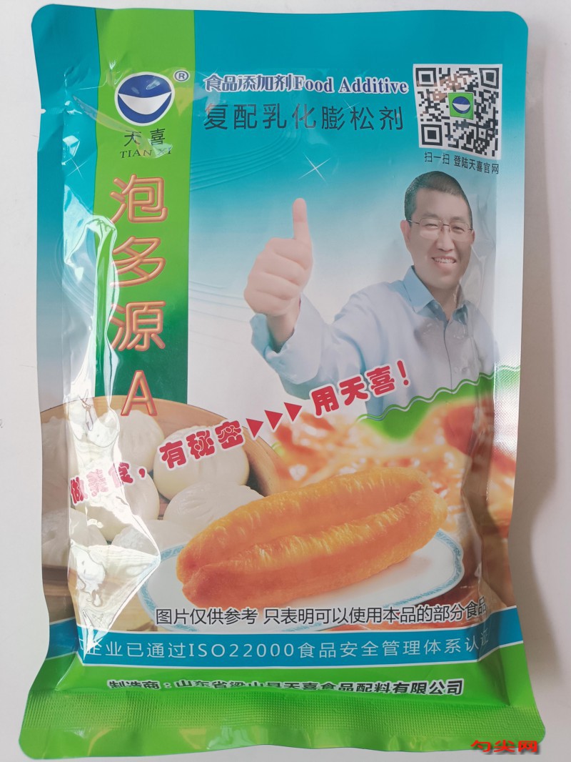 ★功能作用:采用本品加工制作的油条、麻花、汉堡、烙饼、烤饼、馅饼、黄金饼等油炸面制品、焙烤食品膨松个大饱满、外酥里软,凉了不发硬;采用本品加工制作的包子、馒头、花卷、白吉馍、口福饼等发酵面制品膨松个大饱满、口感松软、色泽洁白、凉了不发硬。本品不含明矾、不含铝,安全合法更健康!注:做筷子挑油条用泡多源H型。