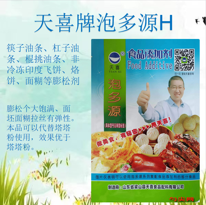 ★功能作用:采用本品加工制作的筷子油条、杠子油条、棍挑油条、烙饼、非冷冻筋饼、非冷冻印度飞饼、非冷冻披萨饼、面糊等发酵面制品、油炸面制品、焙烤食品膨松个大饱满、面坯面糊拉丝有弹性。本品可以代替塔塔粉使用,效果优于塔塔粉。
