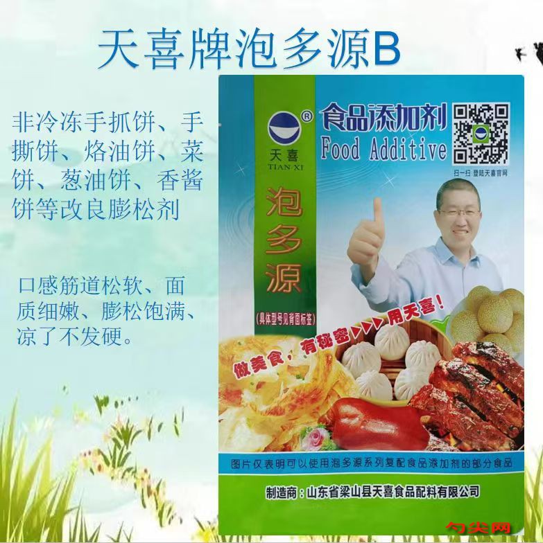 ★功能作用:采用〔泡多源B型〕加工制作的非冷冻手抓饼、手撕饼、烙油饼、菜饼、葱油饼、香酱饼等发酵面制品、裹粉、油炸面制品、焙烤食品口感筋道松软、面质细嫩、膨松饱满、凉了不发硬。冷冻手抓饼可以使用泡多源K型和泡多源M型配合使用。 〔泡多源B型〕还可用于葱花饼、印度飞饼、手抓饼、炸菜角等。