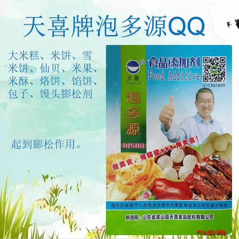 ★功能作用:〔泡多源QQ〕用于米糕、米饼、雪米饼、仙贝、米果、米酥、烙饼、馅饼、包子、馒头等各类食品,起到膨松作用。〔泡多源QQ〕还可用于糖油果子、大米锅巴等。